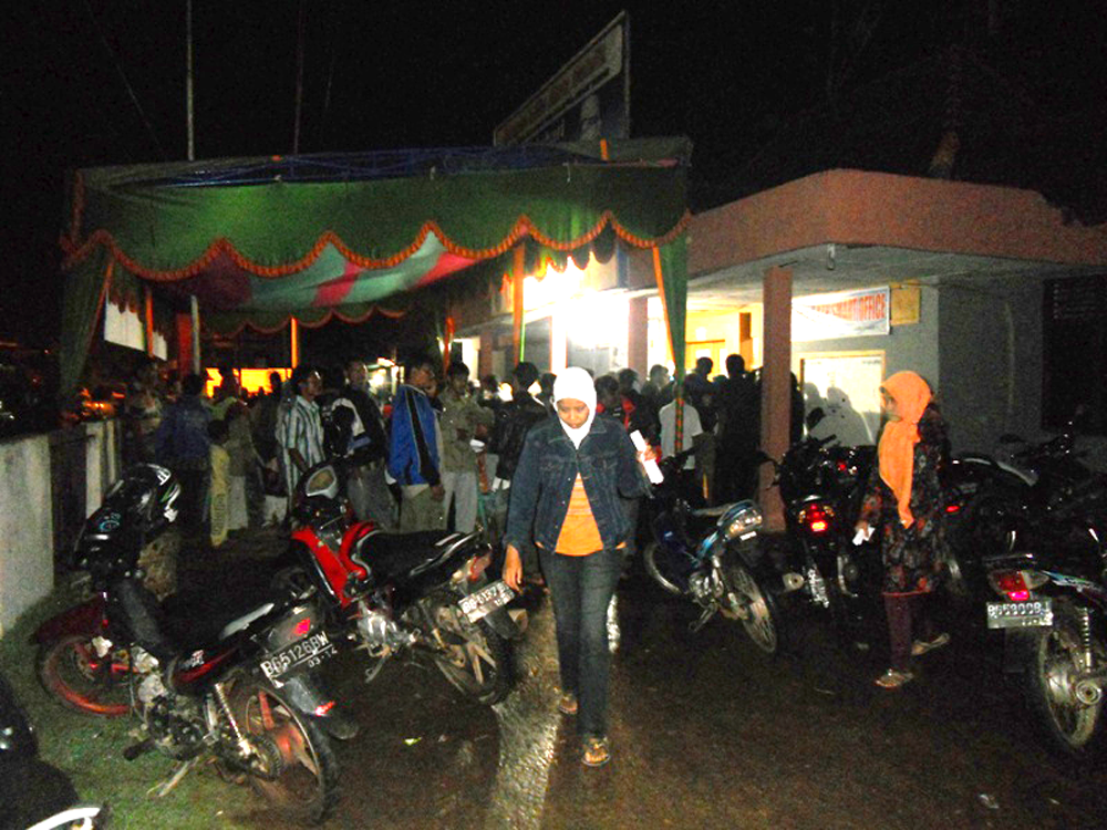 Sementara dilokasi hingga malam hari banyak warga yang berdatangan ke kantor camat sungai lilin untuk membuat E-KTP. Mereka membawa berkas sebagai syarat pembuatan E-KTP seperti kartu keluarga, KTP sebelumnya dan lainnya. Warga yang datang terpaksa ngantri untuk dipanggil mengisi identitas, foto, rekam sidik jari dan rekam iris mata.